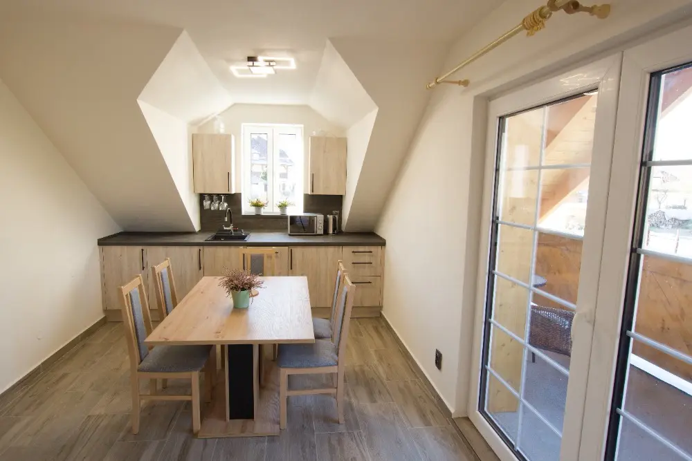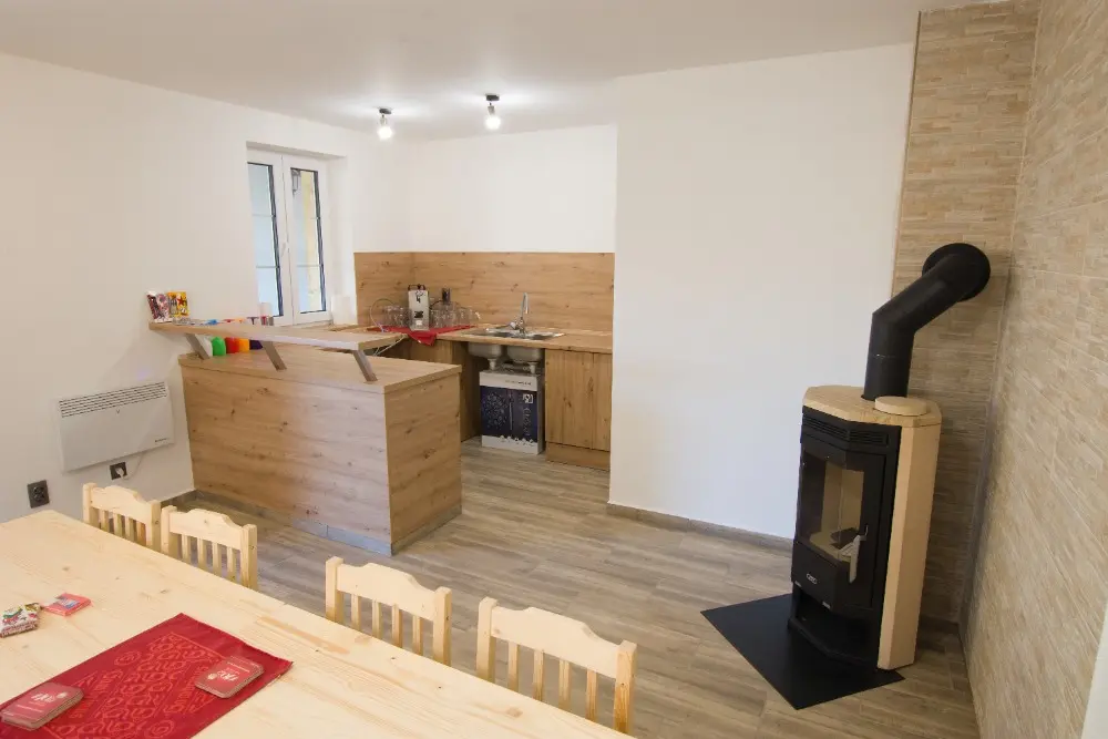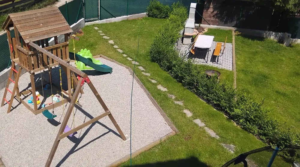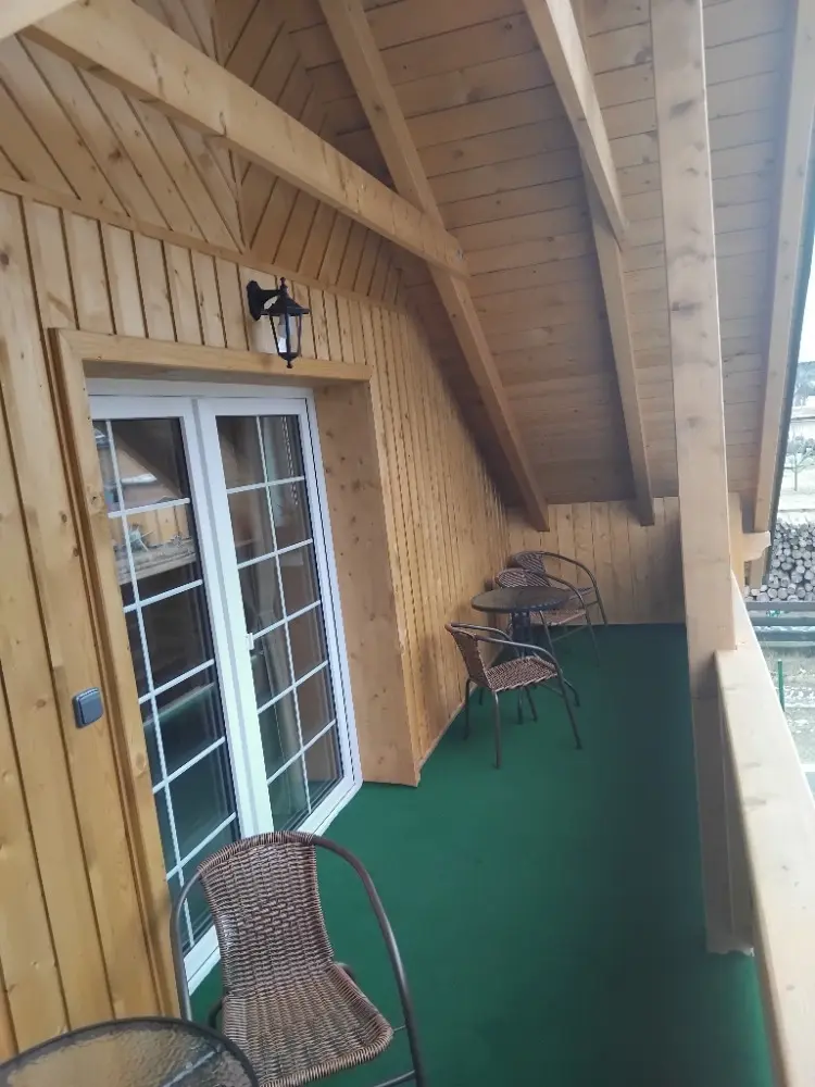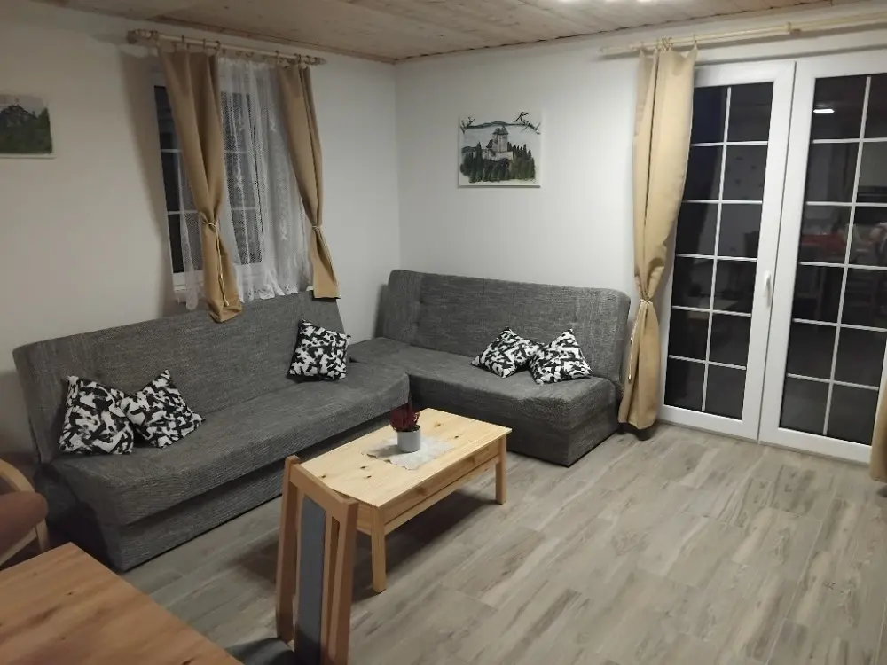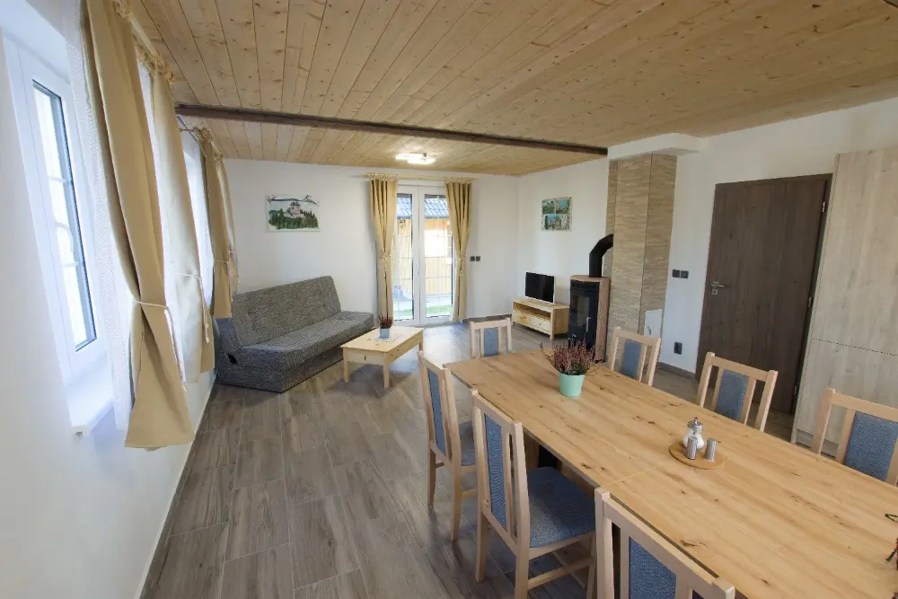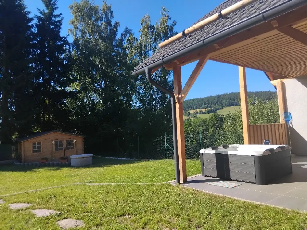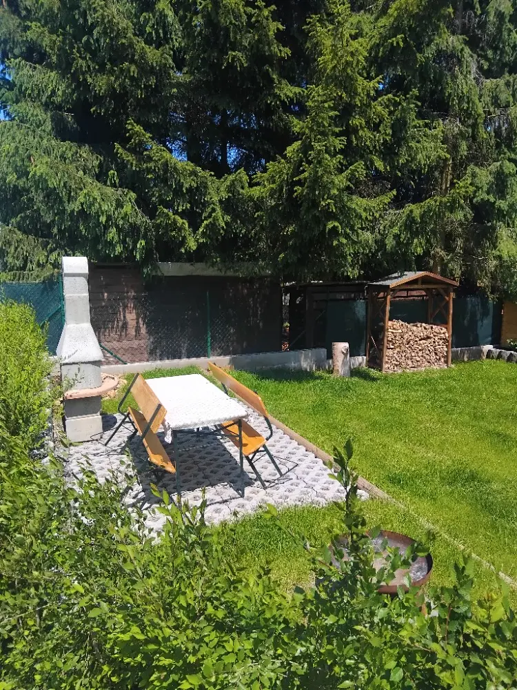 Místo zároveň nabízí spoustu dalších možností jak se zabavit - můžete využít velkou zastřešenou terasu, gril, ohniště, dětský hrad, trampolínu, šipky, venkovní vířivý bazén s výhledem do hor, a mnoho dalšího.