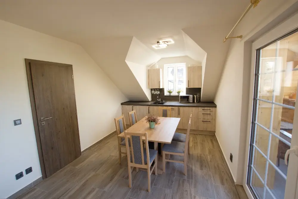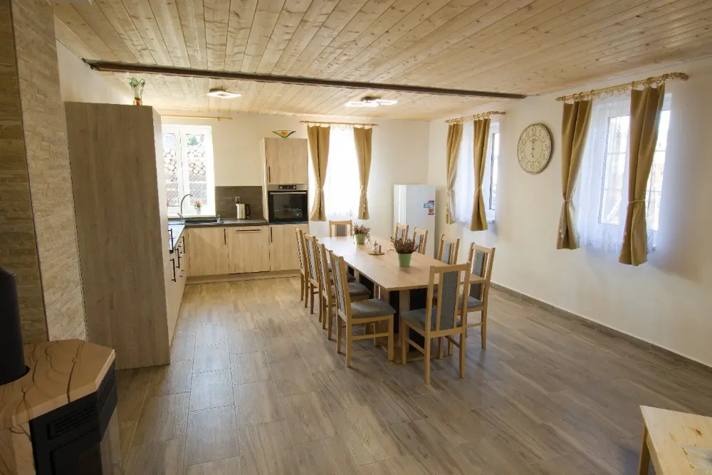 Chalupa je moderně vybavena. Jsou zde dvě kuchyně, je zde myčka, mikrovlnná trouba, indukční plotýnka, el. trouba, lednice, mrazák. Dále je na chalupě chytrá TV, sauna, velká vana s hydromasáží, sprchy, relaxační místnost s lehátky, balkon.