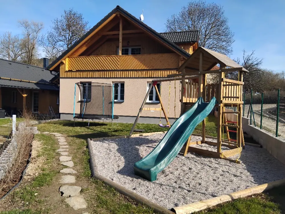 Dětský koutek - hrad se skluzavkou, houpačkami, lany, lezoucí stěnou.....